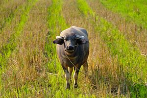 Buffalo Standing In Rice Field Looking At Me